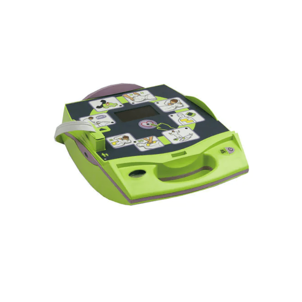 Semi-automatic AED designed to support emergency response to sudden cardiac arrest. Includes protective cover and English-language guidance for practical deployment in professional and public access environments.